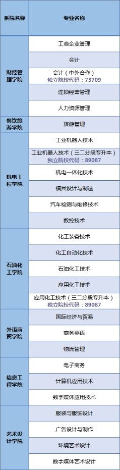 《高等职业教育创新发展行动计划(2015—2018 年)》项目认定骨干专业:石油化工技术、应用化工技术、汽车检测与维修技术、工业机器人技术