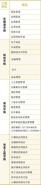 广州涉外经济职业技术学院有哪些专业和院系、什么专业比较好是广大考生和家长朋友们十分关心的问题,为了方便大家查询,本站小编已经为大家整理好了广州涉外经济职业技术学院院系专业设置情况和比较好的专业名单,供大家参考。 一、广州涉外经济职业技术学院院系专业设置情况