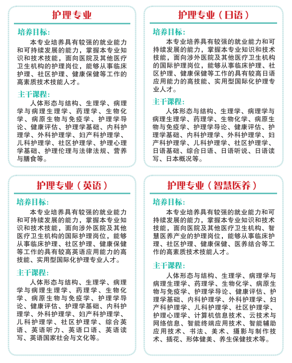 湖北健康职业学院专业设置情况