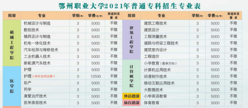 一、鄂州职业大学院系专业设置情况