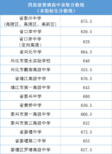 今年泰州普通高中和五年制高职录取控制线及四星级高中录取分数线