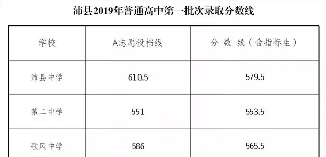 说明:由于沛县2019年中考高分段学生增加较多,再加上部分学生A志愿未填报第二中学,滑档后被第二中学录取,是造成第二中学录取分数线高于A志愿投档线的主要原因。