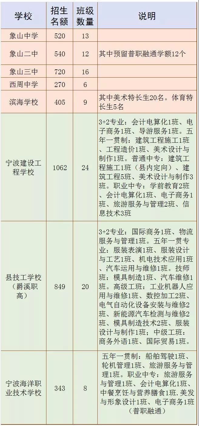 象山县2019年普职高学校招生计划