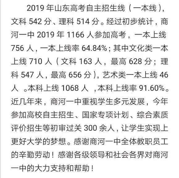 2019商河一中录取分数线(附2019高考成绩喜报)