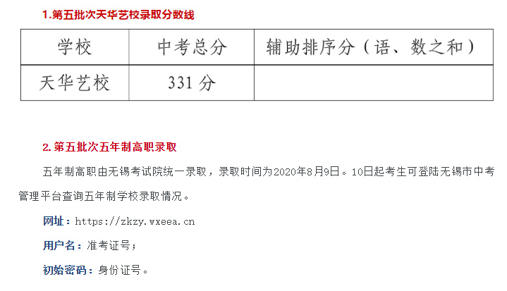 今天上午,江阴市教育招生考试中心发布中招公告(七)第五批次天华艺校录取分数、第五批次五年制高职录取相关讯息公布!