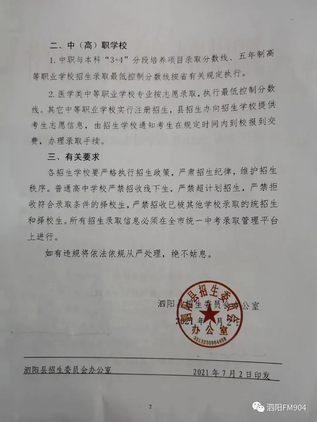 各县(区)招生委员会,教育局,各有关招生学校:根据2021年中等学校招生统一考试成绩,结合招生计划和考生志愿,经统计测算,现将各类学校招生录取分数线公布如下: