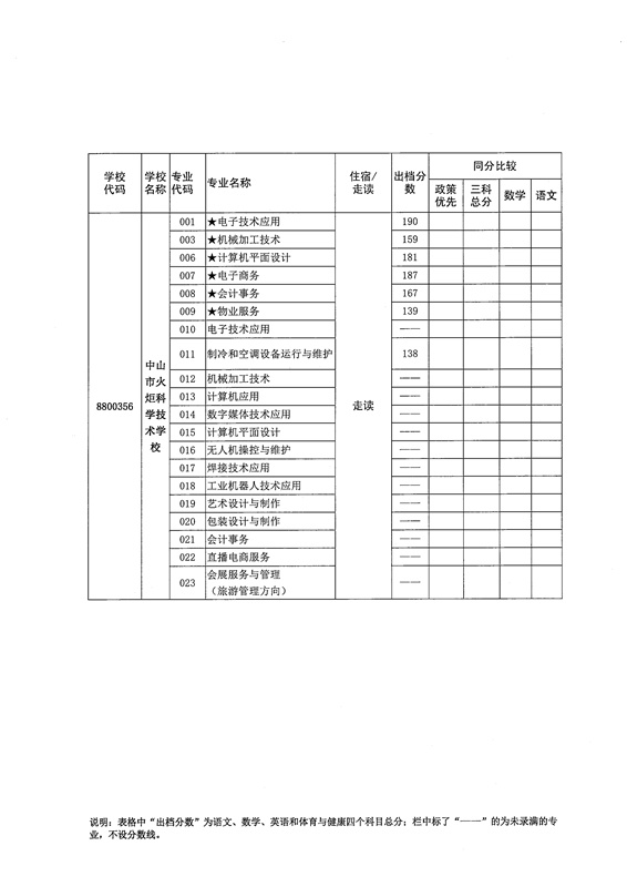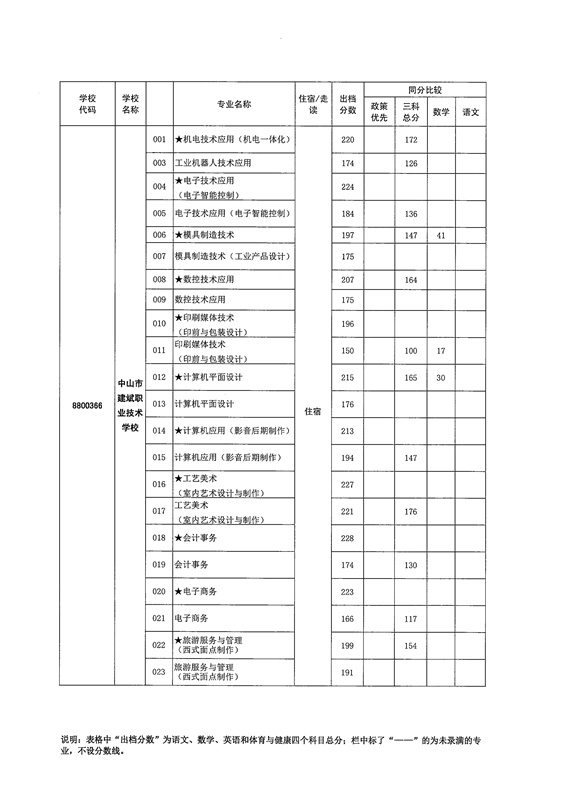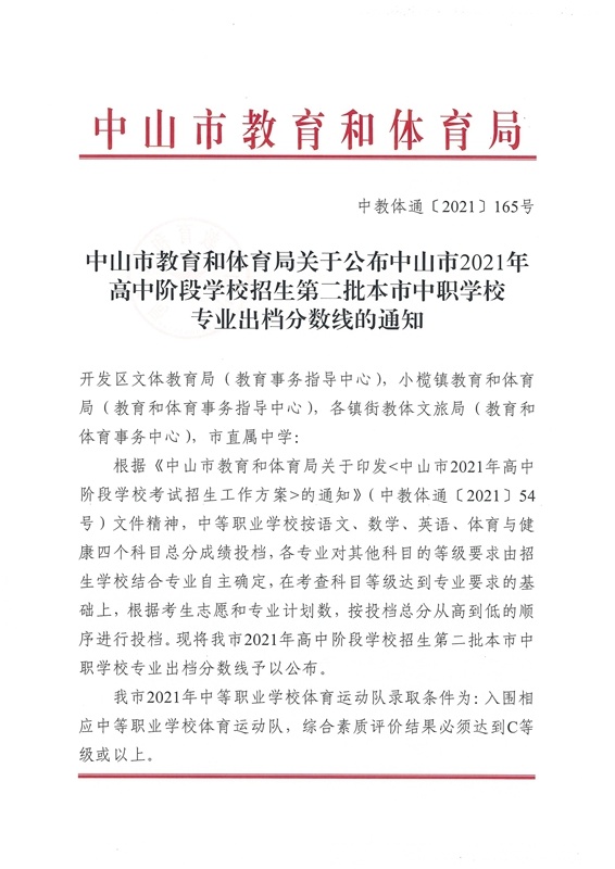 中山市2021年高中阶段学校招生第二批本市中职学校专业出档分数线的通知