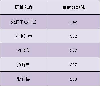 从娄底市教育局得知,全市各区域普通高中录取最低控制分数线分别为:
