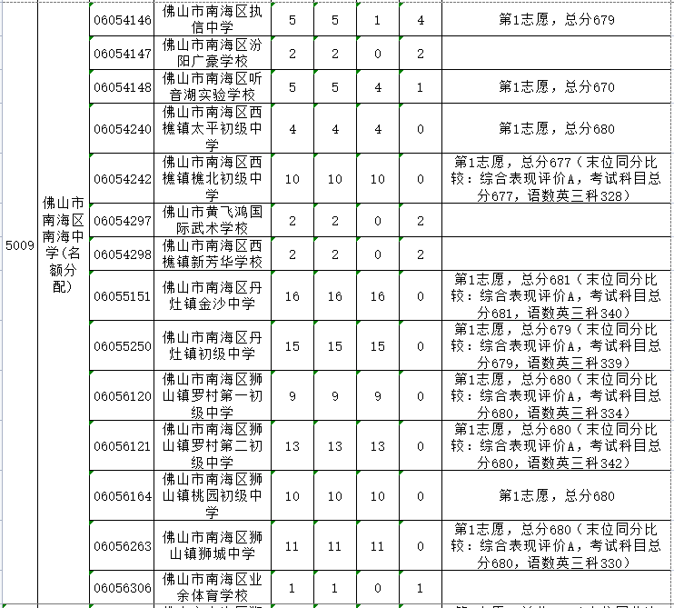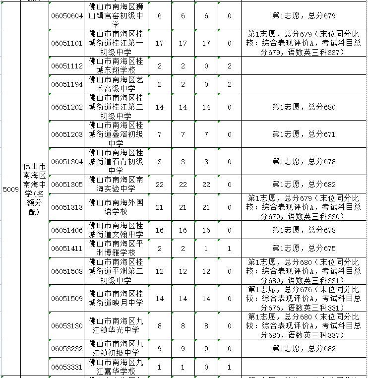 面向区内招生的名额分配,各学校录取分数线控制在不低于该校普通生录取分数线15分以内。未完成计划总计800个,转入第四层次面向全市招生。