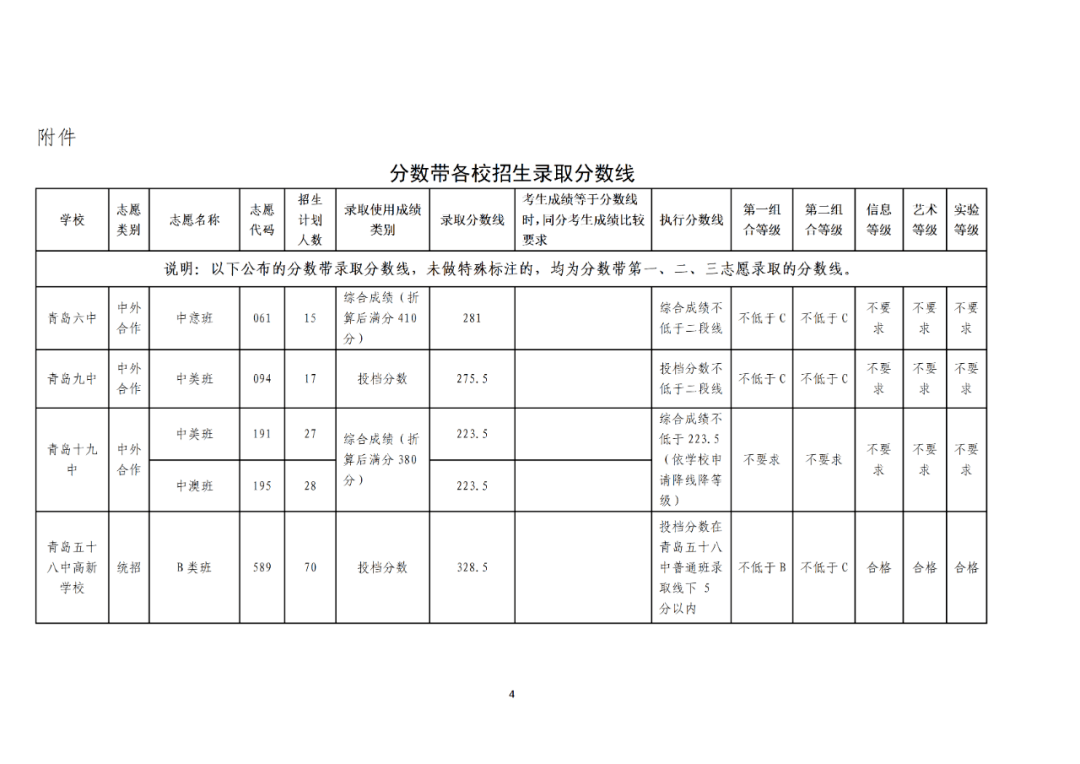 青岛市发布2022年高中阶段学校第二阶段高中招生录取分数线。详情如下