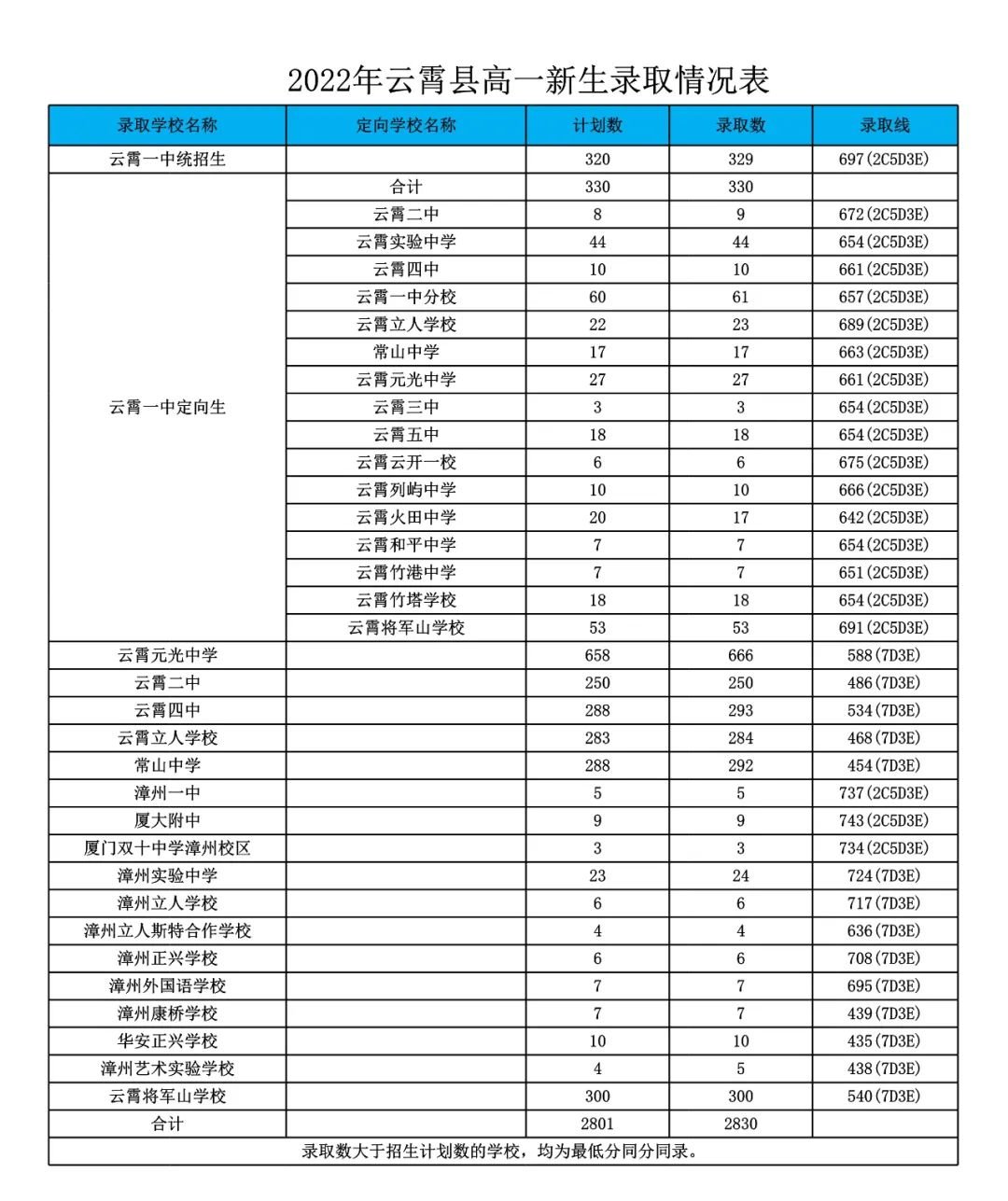 2022年漳州市云霄县高中招生录取分数线公布,具体如下: