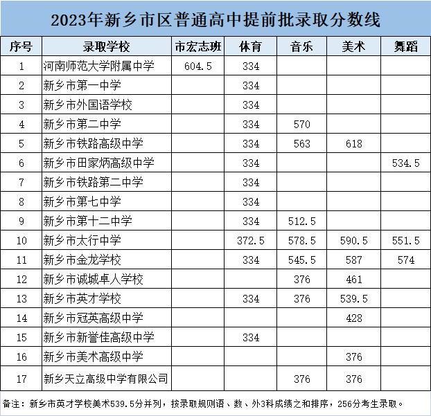 2023年新乡市区普通高中提前批录取分数线