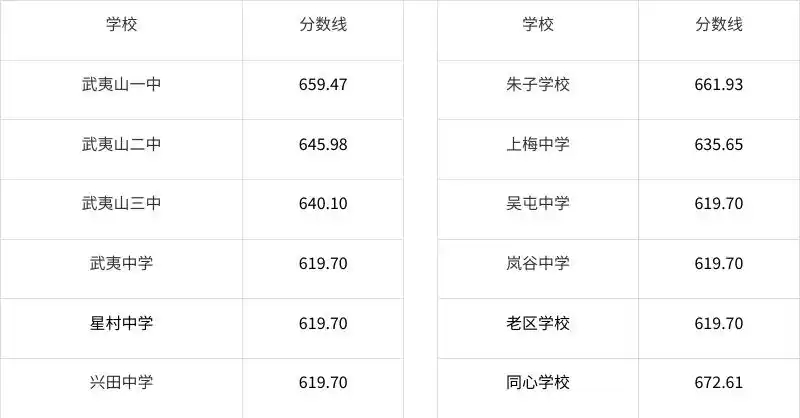 城区未完成的武夷山一中定向招生计划,剩余的定向生指标面向城区调剂录取分数线:670.40。