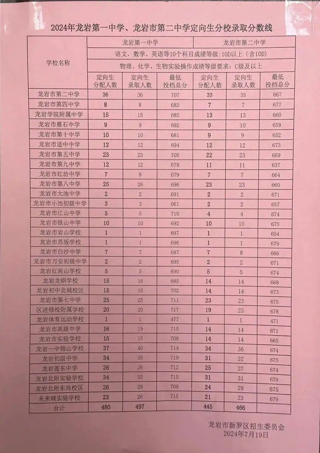 2024年龙岩市龙岩市高中招生录取分数线公布,具体如下: