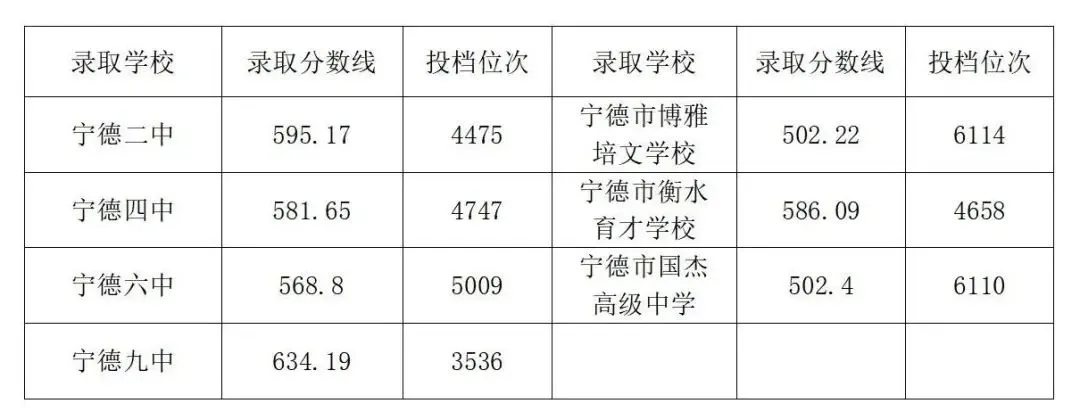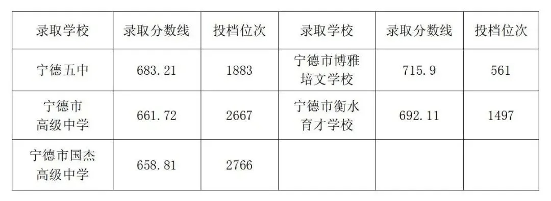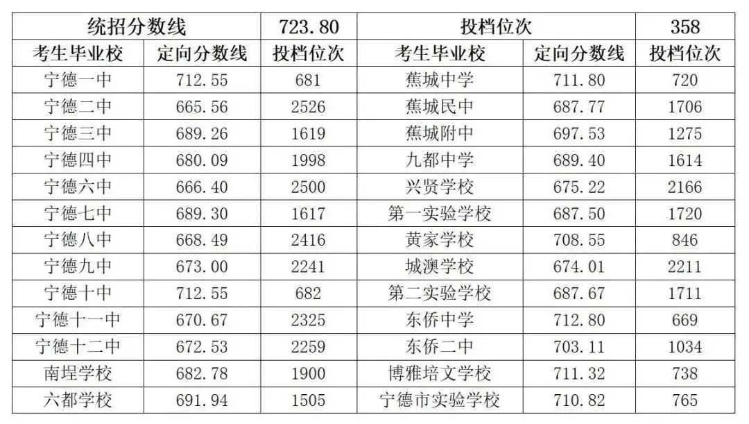 蕉城区普通高中招生提前批和宁德一中录取分数