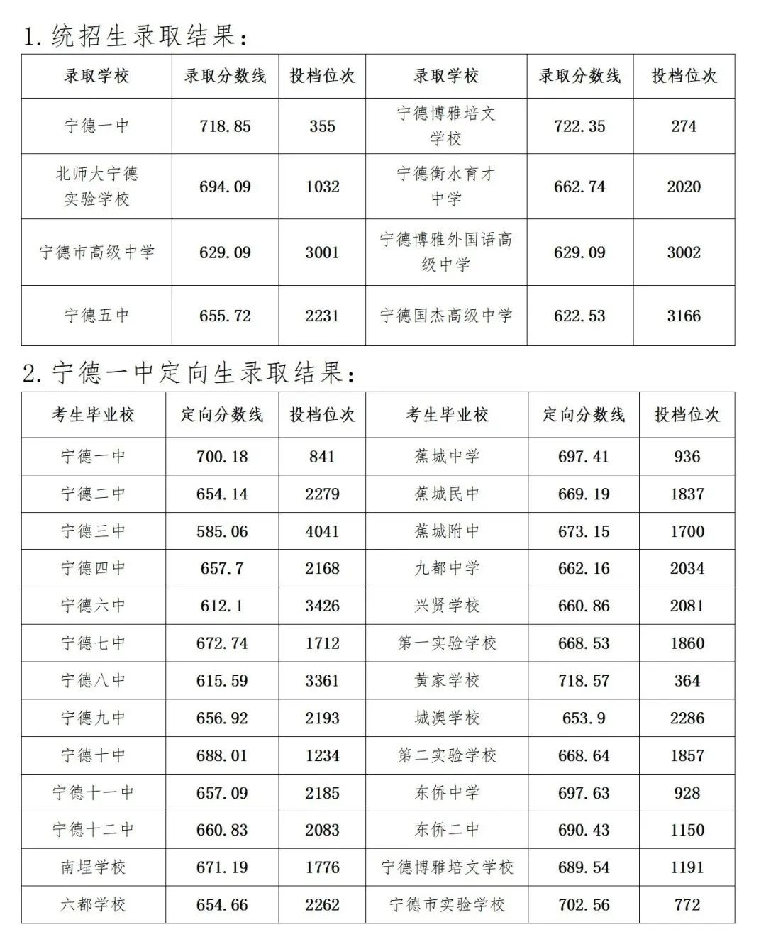 2025宁德一中录取分数线