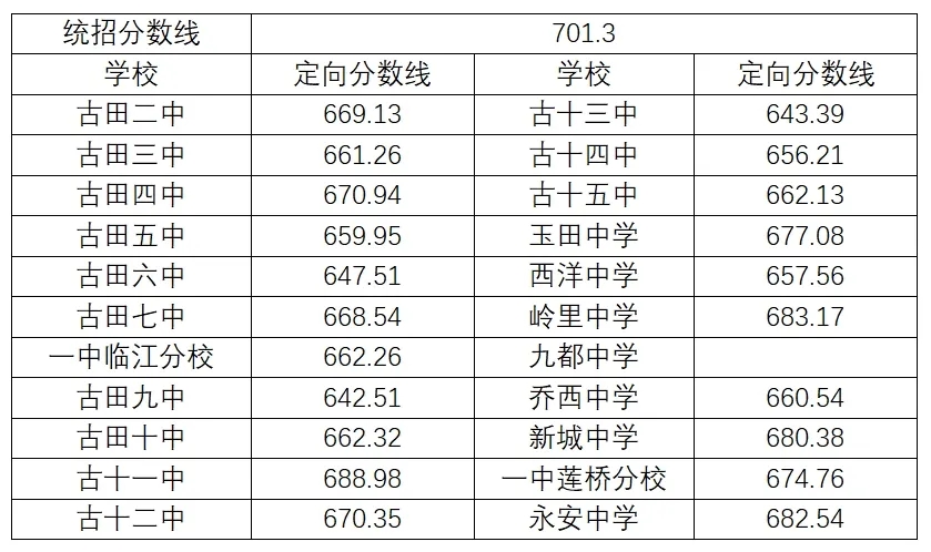 二、古田一中录取分数线