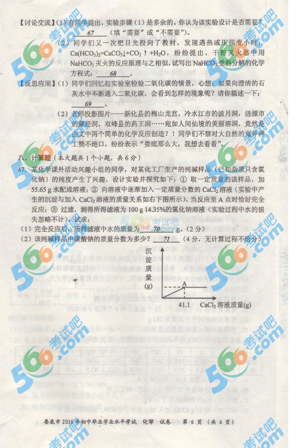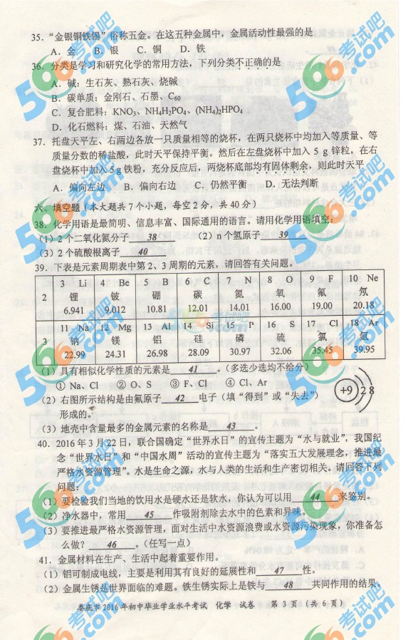 精英中考网www.52zhongkaow.com消息:2017年娄底市中考已经结束,又有一批新的初三考生即将参加2018中考,为了帮助广大师生更好的备考,小编收集整理了历年娄底中考试题及参考答案,供广大考生参考,下面是2016娄底中考化学试题及参考答案