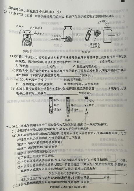 2017重庆中考化学试题试卷及答案(A卷)