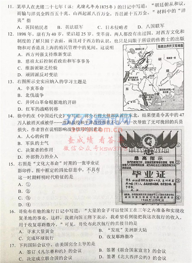 精英中考网消息:2018年河北中考结束,小编第一时间收集整理2018河北中考文综答案、河北中考文科综合试题试卷答案及评分标准,供广大考生参考