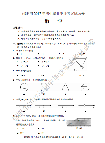 精英中考网www.52zhongkaow.com消息:2017年邵阳市中考已经结束,又有一批新的初三考生即将参加2018中考,为了帮助广大师生更好的备考,小编收集整理了历年邵阳中考试题及参考答案,供广大考生参考,下面是2017邵阳中考数学试题及参考答案