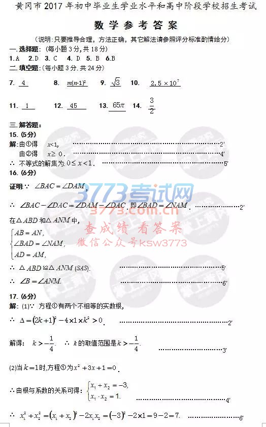 精英中考网消息:2017年湖北省黄冈市中考已经结束,很快又将一批新的初三考生即将参加2018中考,为了帮助广大师生更好的备考,小编收集整理了2017黄冈中考各科试题及参考答案,供广大考生参考,下面是2017黄冈中考数学试题试卷及答案