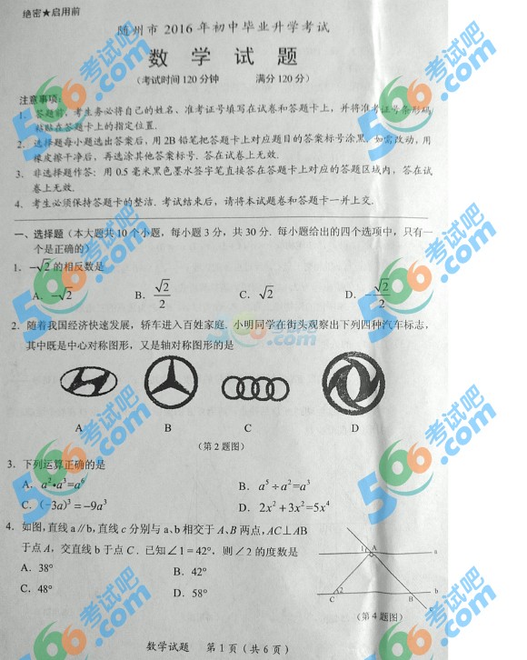 精英中考网消息:2017年湖北省随州市中考已经结束,很快又将一批新的初三考生即将参加2018中考,为了帮助广大师生更好的备考,小编收集整理了2016随州中考各科试题及参考答案,供广大考生参考,下面是2016随州中考数学试卷试题及参考答案