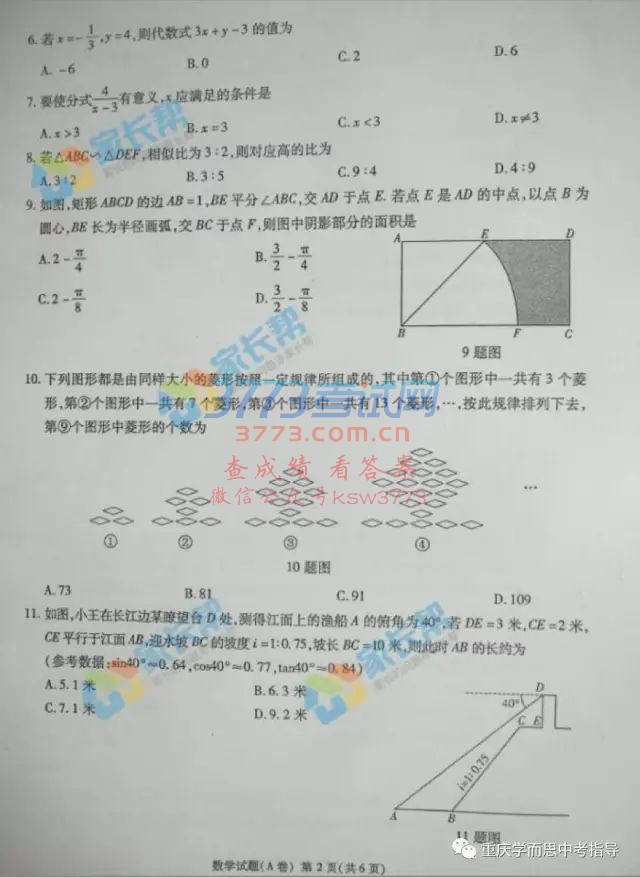 精英中考网消息:2017年重庆市中考已经结束,六月,又有一批新的考生参加2018中考,为了帮助广大考生更好的复习备考,小编收集整理了2017重庆中考各科试题及参考答案,供广大考生参考,下面是2017重庆中考数学试题试卷及答案(A卷)