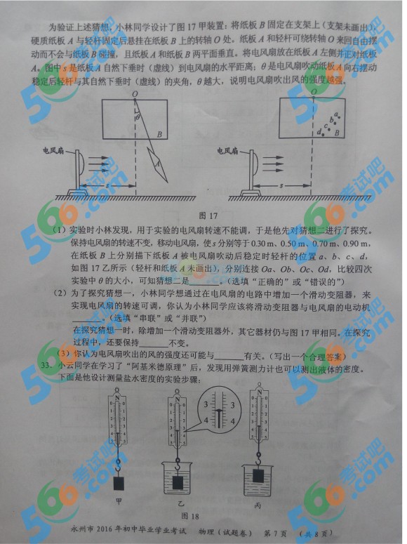 精英中考网www.52zhongkaow.com消息:2017年永州市中考已经结束,又有一批新的初三考生即将参加2018中考,为了帮助广大师生更好的备考,小编收集整理了历年永州中考试题及参考答案,供广大考生参考,下面是2016永州中考物理试题及参考答案