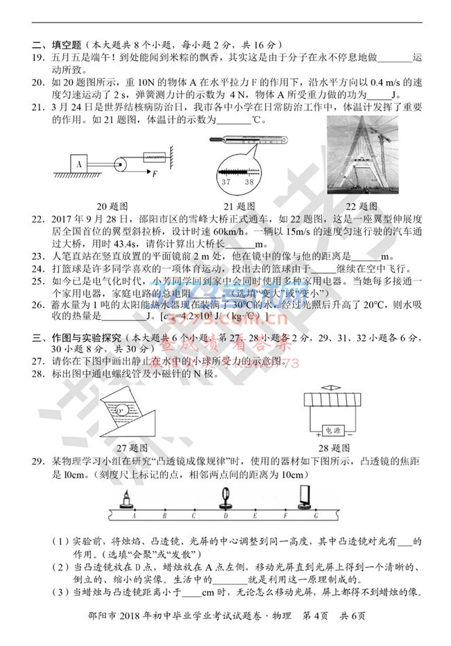精英中考网消息:2018年邵阳中考结束,小编第一时间收集整理2018邵阳中考物理试题试卷答案及评分标准,供广大考生参考