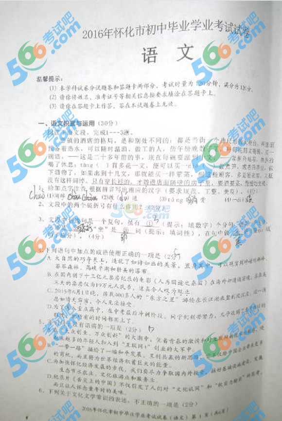 精英中考网www.52zhongkaow.com消息:2017年怀化市中考已经结束,又有一批新的初三考生即将参加2018中考,为了帮助广大师生更好的备考,小编收集整理了历年怀化中考试题及参考答案,供广大考生参考,下面是2016怀化中考语文试题及参考答案