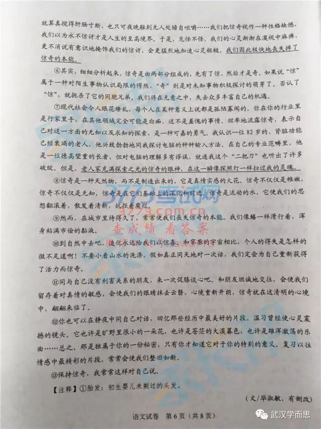 精英中考网www.52zhongkaow.com消息:2017年武汉市中考已经结束,又有一批新的初三考生即将参加2018武汉中考,为了帮助广大师生更好的备考,小编收集整理了历年武汉中考试题及参考答案,供广大考生参考,下面是2017武汉中考语文试题及参考答案