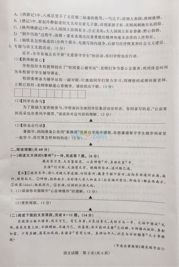 2017泰州中考语文试题试卷及答案