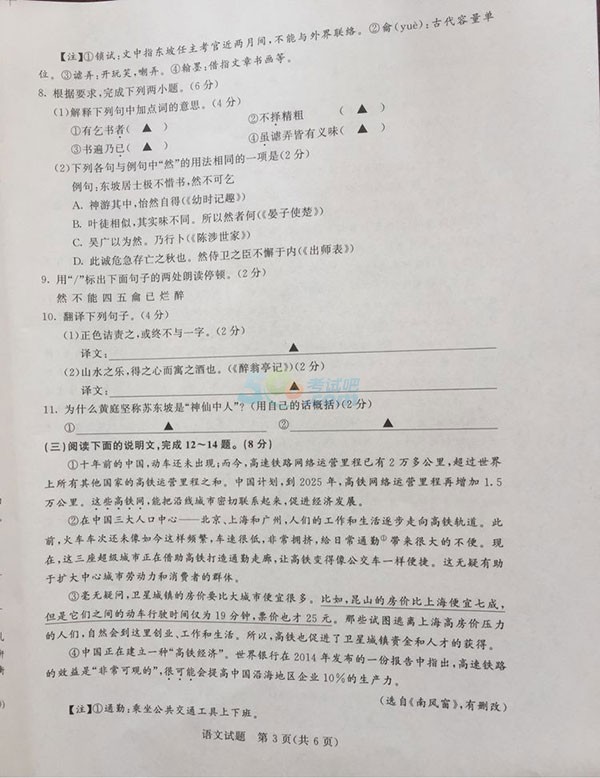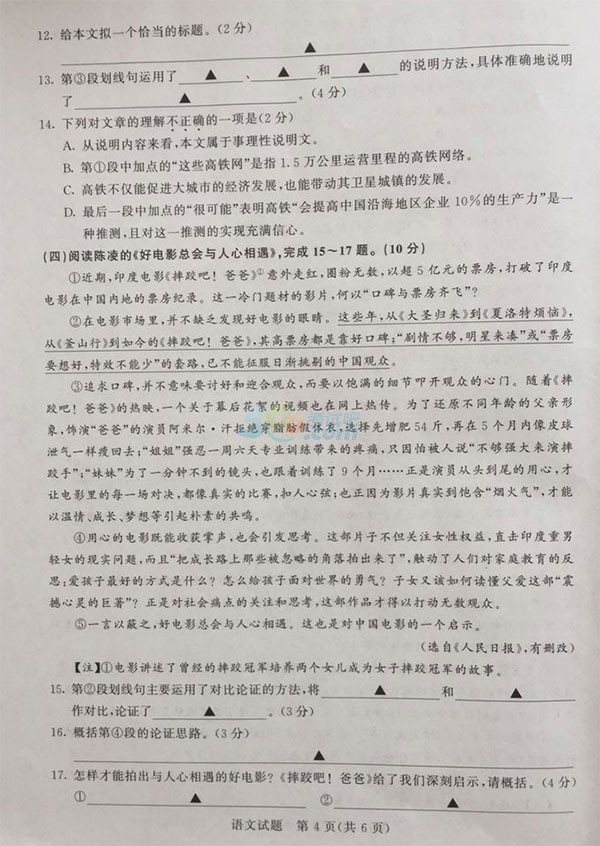 2017泰州中考语文试题试卷及答案