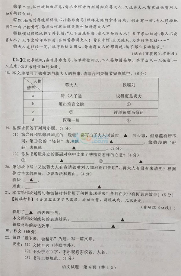 2017泰州中考语文试题试卷及答案