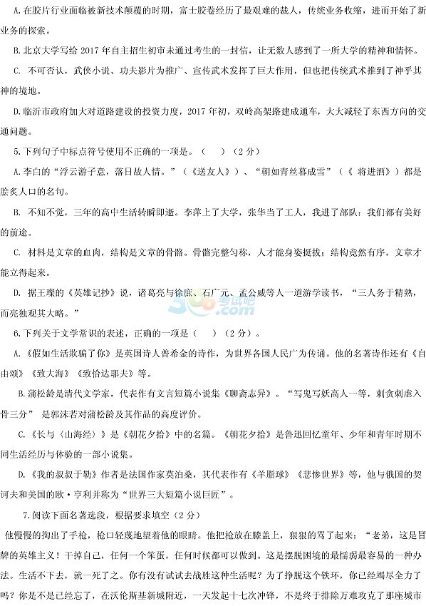 精英中考网消息:2017年山东省临沂市中考已经结束,六月,又有一批新的考生参加2018中考,为了帮助广大考生更好的复习备考,小编收集整理了2017临沂中考各科试题及参考答案,供广大考生参考,下面是2017临沂中考语文试题试卷及答案