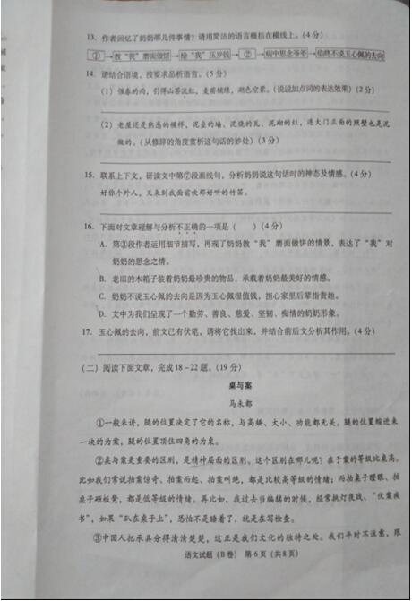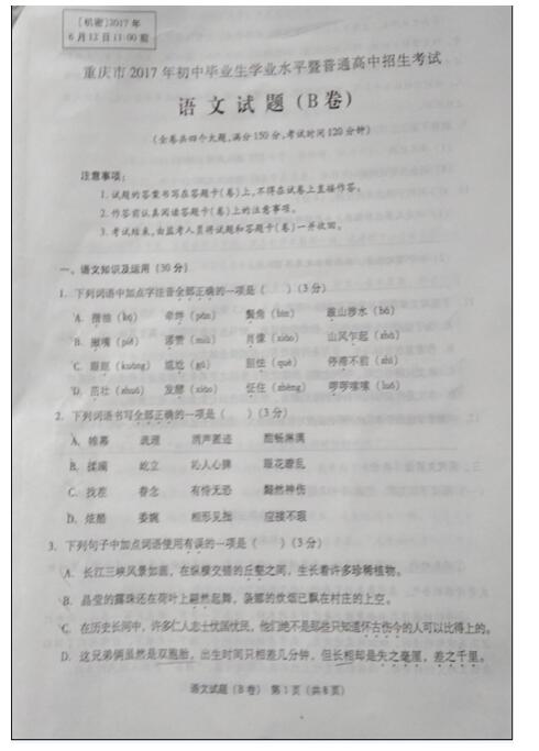 精英中考网消息:2017年重庆市中考已经结束,六月,又有一批新的考生参加2018中考,为了帮助广大考生更好的复习备考,小编收集整理了2017重庆中考各科试题及参考答案,供广大考生参考,下面是2017重庆中考语文试题试卷及答案(B卷)
