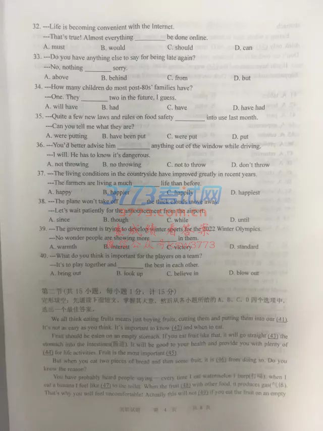 精英中考网消息:2017年湖北省宜昌市中考已经结束,很快又将一批新的初三考生即将参加2018宜昌中考,为了帮助广大师生更好的备考,小编收集整理了2017宜昌中考试题及参考答案,供广大考生参考,下面是2017宜昌中考英语试题及参考答案