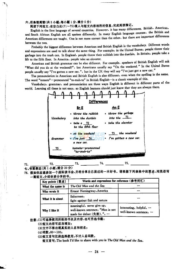 考试吧:2017年浙江金华中考《英语》试题及答案