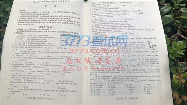 2018南京中考英语试题及答案发布