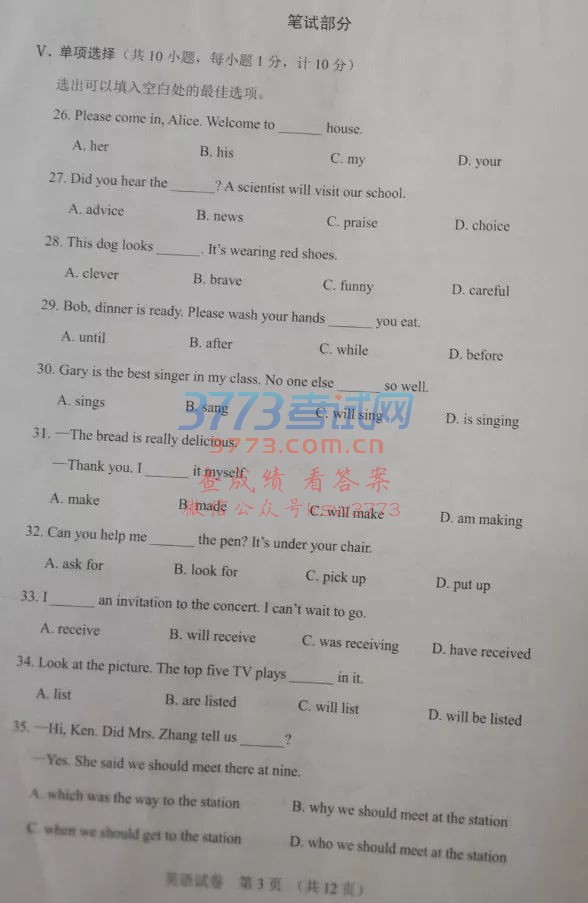 精英中考网消息:2018年河北中考结束,小编第一时间收集整理2018河北中考英语答案、河北中考英语试题试卷答案及评分标准,供广大考生参考
