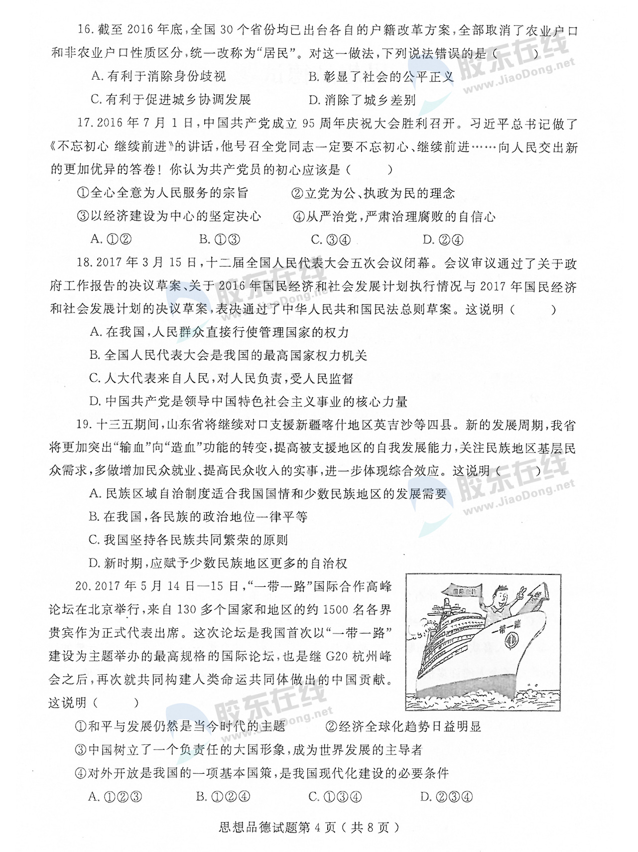 精英中考网消息:2017年山东省烟台市中考已经结束,六月,又有一批新的考生参加2018中考,为了帮助广大考生更好的复习备考,小编收集整理了2017烟台中考各科试题及参考答案,供广大考生参考,下面是2017烟台中考思想品德试题试卷及答案