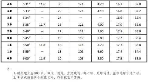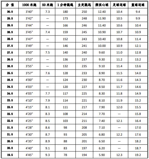 2021年初中学业水平体育与健康学科考试评分标准(男生)