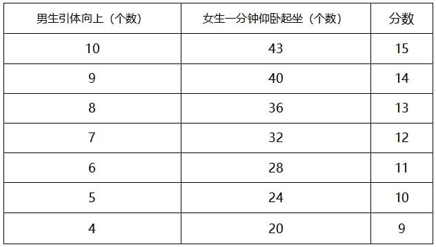 此评分标准只限于2022年,自2023年起,引体向上(男)、一分钟仰卧起坐(女)列入必考项目,动作要领和赋分标准参照《国家学生体质健康标准》执行。
