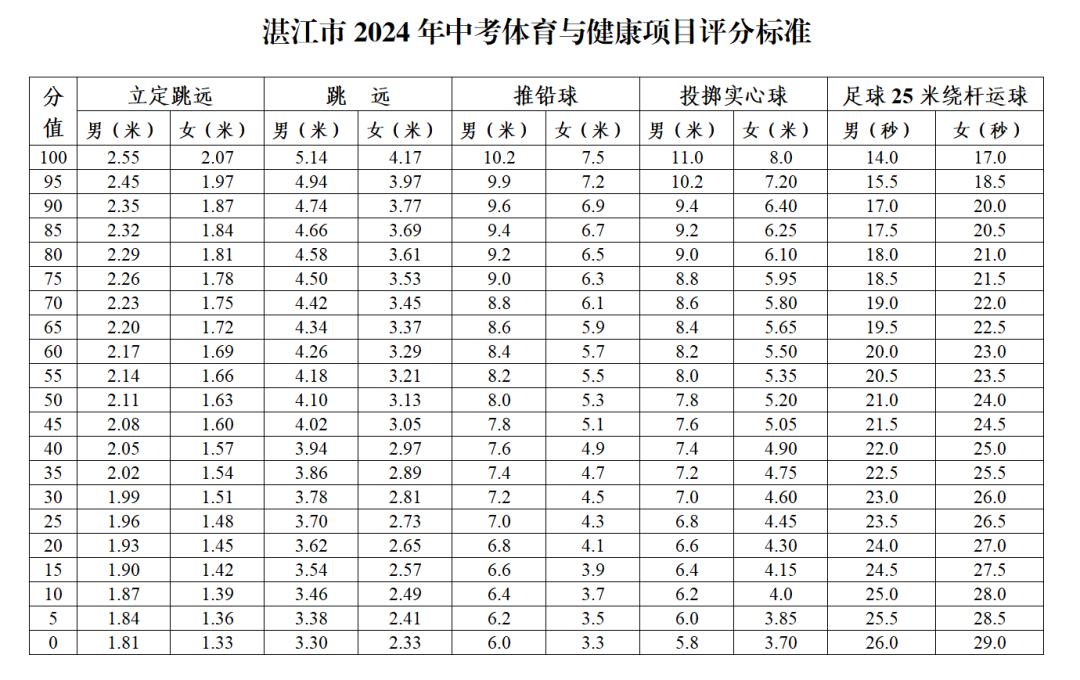 2024年湛江市中考体育将恢复必考科目和选考科目: