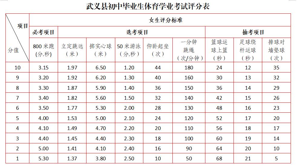 50米游泳、一分钟跳绳、立定跳远、掷实心球、男生引体向上、女生仰卧起坐五个项目。考生自选两项考试,已选考游泳考试的考生,选择一项考试。