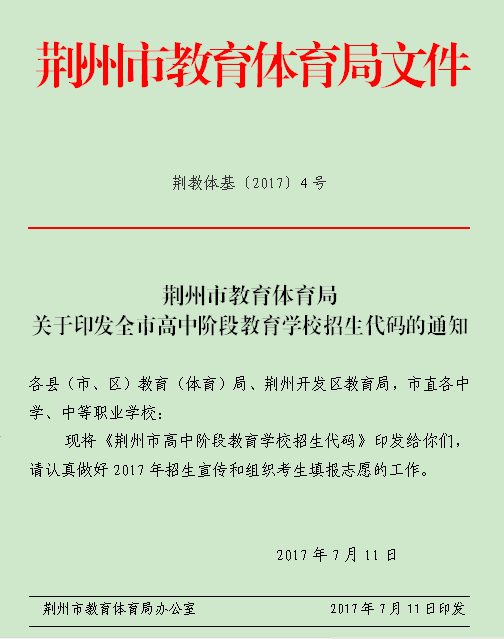 荆州市高中阶段教育学校招生代码
