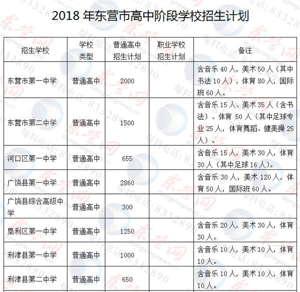 山东省东营市教育局公布2018年东营市高中阶段学校招生计划,东营市16所高中招生14215人,9所职业学校招生8600人。