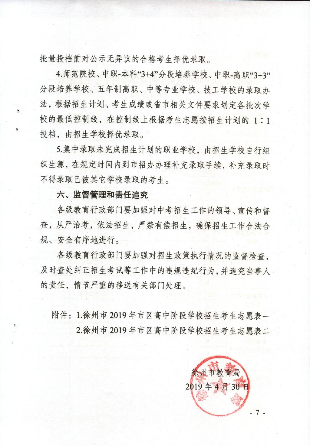 徐州市2019年市区高中阶段学校招生实施办法