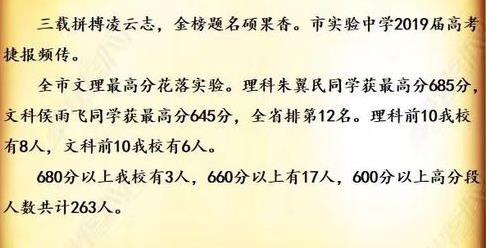 齐齐哈尔实验中学2019高考喜报成绩、600分以上人数情况